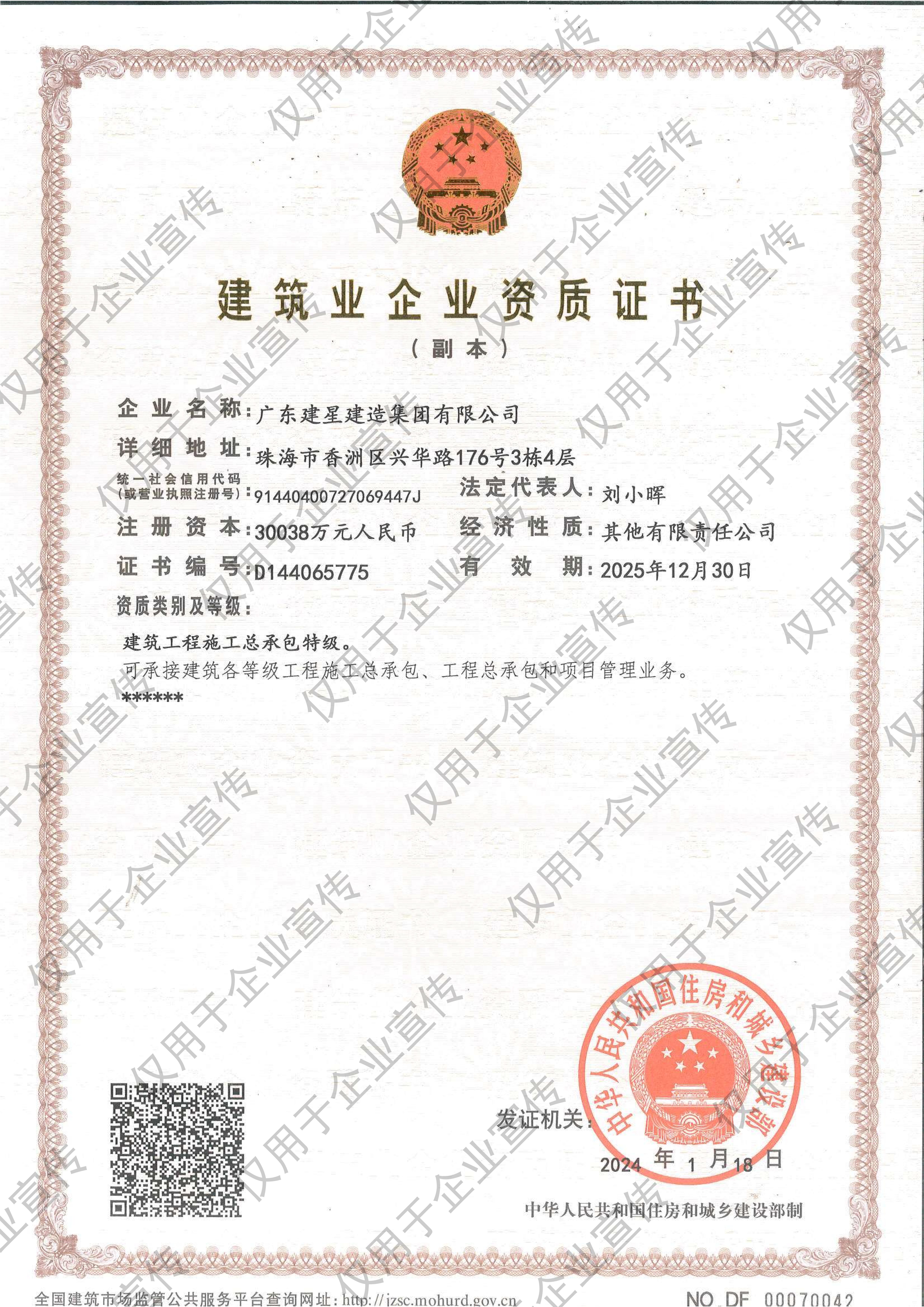 并購廣東建星集團, 取得建筑工程施工總承包特級資質(zhì)