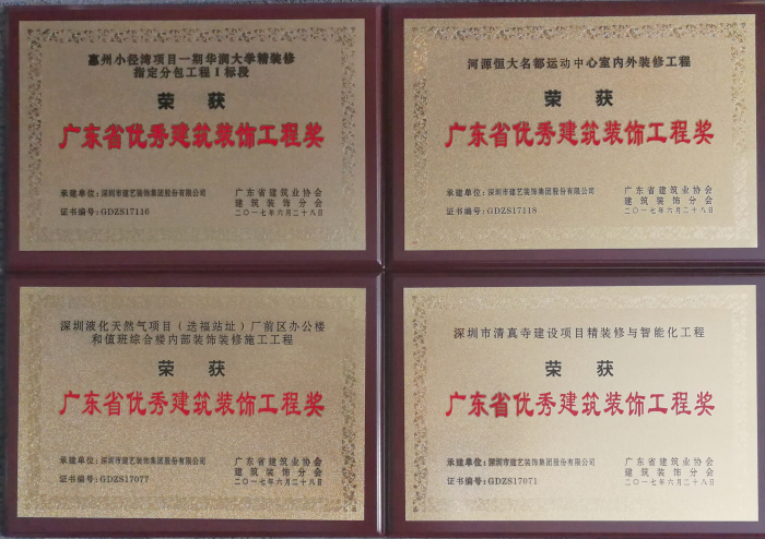 建藝集團(tuán)喜獲4項(xiàng)“2017年廣東省優(yōu)秀建筑裝飾工程獎(jiǎng)”