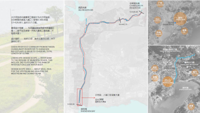 大沙河生態(tài)長廊是深圳市“十二五”規(guī)劃重大項(xiàng)目“大沙河創(chuàng)新走廊”建設(shè)的重要組成部分。負(fù)責(zé)設(shè)計(jì)的深圳市國家級科技領(lǐng)軍人才、北林苑景觀及建筑規(guī)劃設(shè)計(jì)院楊海軍教授表示,它是聯(lián)通羊臺山、塘朗山森林生態(tài)系統(tǒng)與深圳灣海灣生態(tài)系統(tǒng)的生態(tài)廊道,是深圳“四帶六廊”基本生態(tài)格局中山脈支撐帶和濱海生態(tài)帶之間的重要廊道,在深圳自然生態(tài)網(wǎng)絡(luò)格局中具有重要意義。