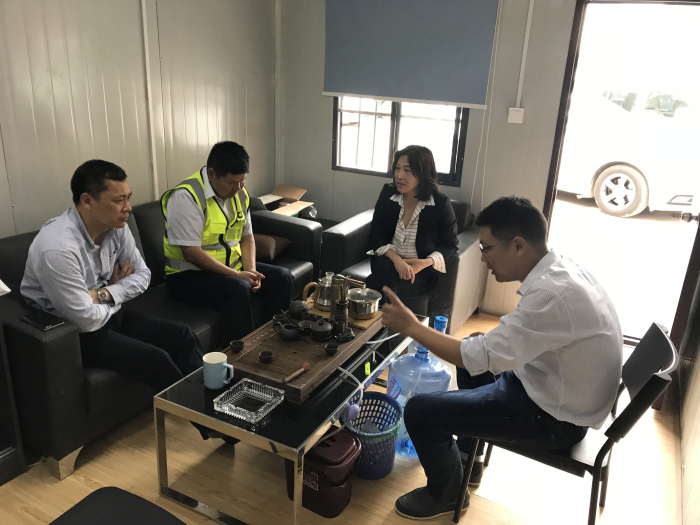 劉慶云執(zhí)行副總裁(左一)等領(lǐng)導(dǎo)在項(xiàng)目部交流