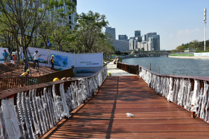 劉總表示:本著“為人民造福、為社會添彩”之宗旨,在嚴(yán)把質(zhì)量關(guān)的同時,建藝團隊始終嚴(yán)格把控現(xiàn)場每個環(huán)節(jié),并充分貫徹綠色環(huán)保標(biāo)準(zhǔn),以高度負責(zé)的專業(yè)精神,配合技術(shù)一流、專業(yè)素質(zhì)過硬的核心團隊精心雕琢。目前,人行道石材鋪裝、自行車道路基施工、截污口裝飾、沿河欄桿施工等正有條不紊進行中,總體形象進度已達70%。在政府部門及社會大眾的關(guān)注與期盼下,建藝集團等施工單位定不負囑托,以高標(biāo)準(zhǔn)、高素質(zhì)的專業(yè)精神,裝點南山“母親河”,打造“綠色新標(biāo)桿”!