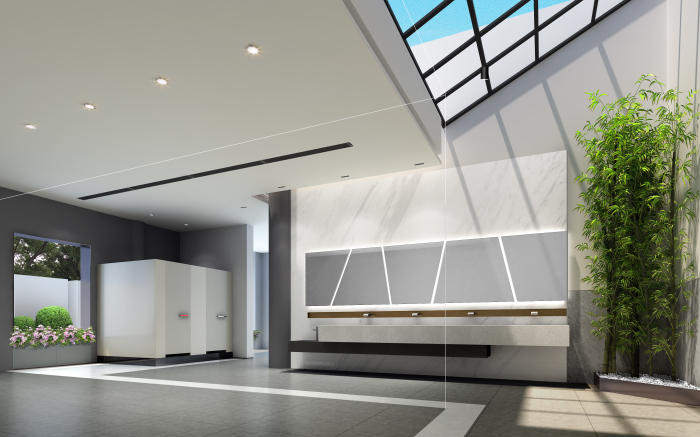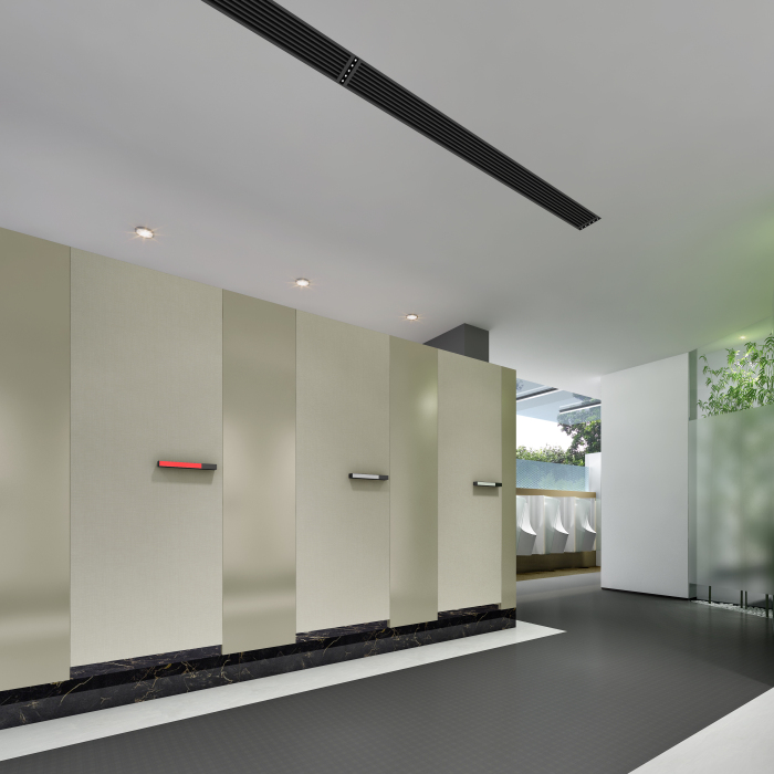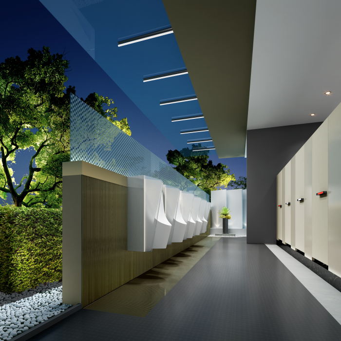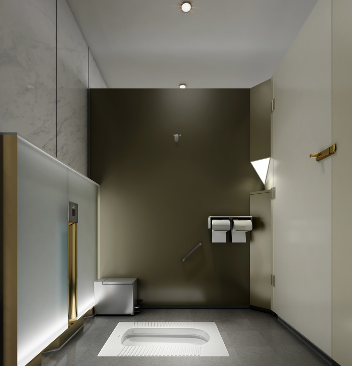 結(jié)合南山的定位——世界級(jí)創(chuàng)新轉(zhuǎn)型濱海城區(qū),本公廁要做到“顛覆傳統(tǒng),打開思路”,按全市最高標(biāo)準(zhǔn)五星級(jí)。但受結(jié)構(gòu)層高和風(fēng)管影響,空間高度達(dá)不到五星,力爭(zhēng)在使用體驗(yàn)方面達(dá)到最精致高端化。