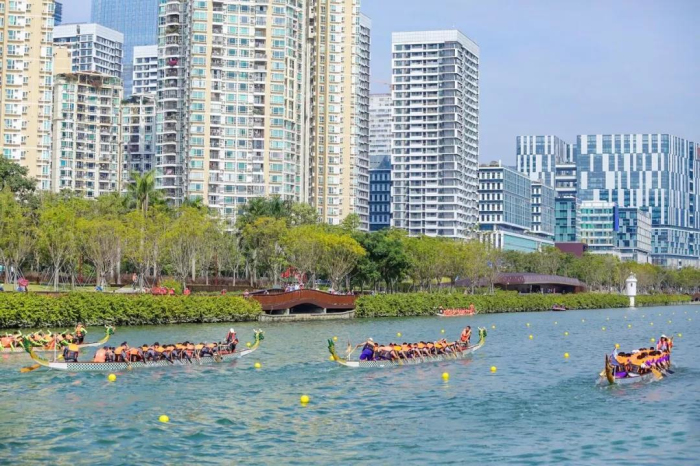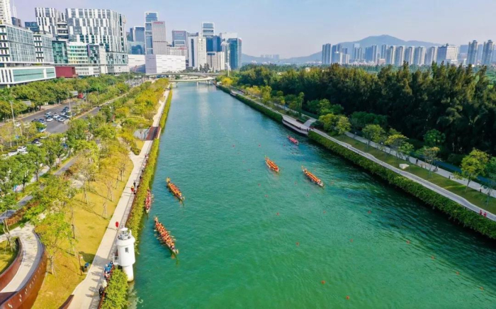 與深圳灣公園無縫銜接,利用寬闊的河面打造水上賽艇、龍舟賽事等水上活動(dòng),在都市之芯營造出人水相親,生態(tài)健康與景觀秀美交相輝映的璀璨景象。