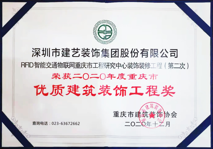 繼榮獲“中國建筑工程裝飾獎”殊榮后,建藝集團(tuán)承建項目——RFID智能交通物聯(lián)網(wǎng)重慶市工程研究中心裝飾工程近日再獲“2020年度重慶市優(yōu)質(zhì)建筑裝飾工程獎”。