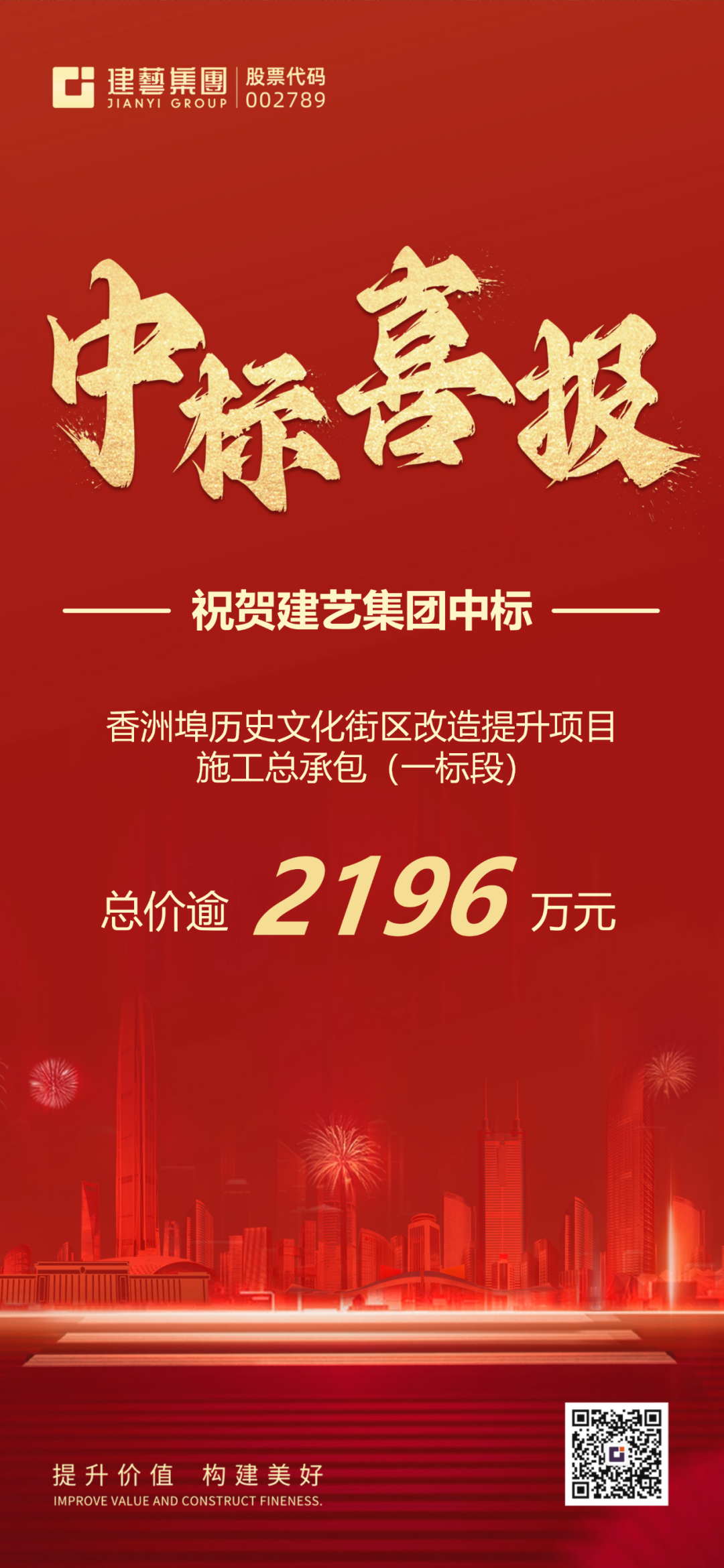 近期,深圳市建藝裝飾集團股份有限公司新晉中標珠海市“香洲埠歷史文化街區(qū)改造提升項目施工總承包(一標段)”,總價逾2196萬元。