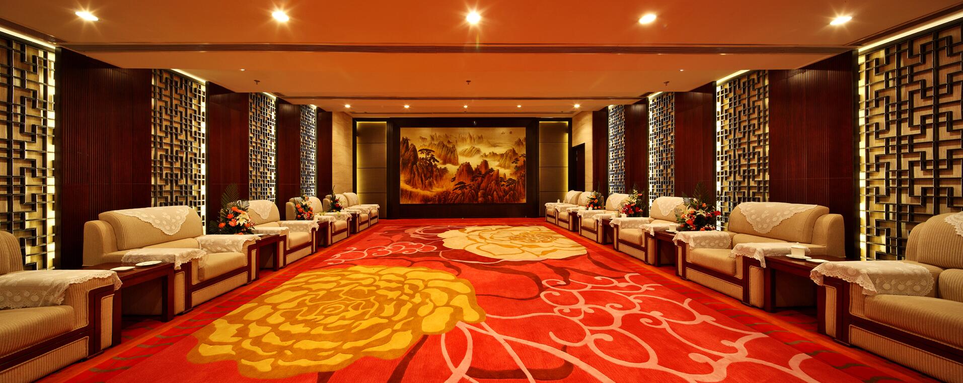 寬敞明亮的貴賓接待室在空間上,給人一種舒適、輕松氛圍,設(shè)計師將自然的元素融入空間,結(jié)合山水畫、獨具韻味的燈光、奢華的家私、精美的地毯的巧妙搭配,最大限度的強調(diào)了色感與質(zhì)感的對比,清新自然舒緩身心。