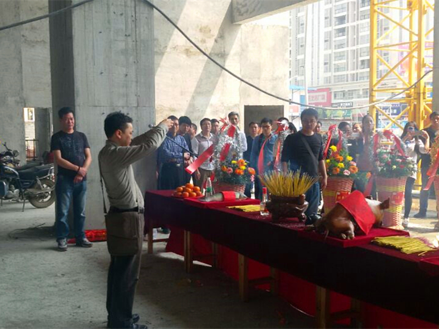 建藝集團副總裁劉慶云(左二)在開工典禮祭祀儀式現(xiàn)場
