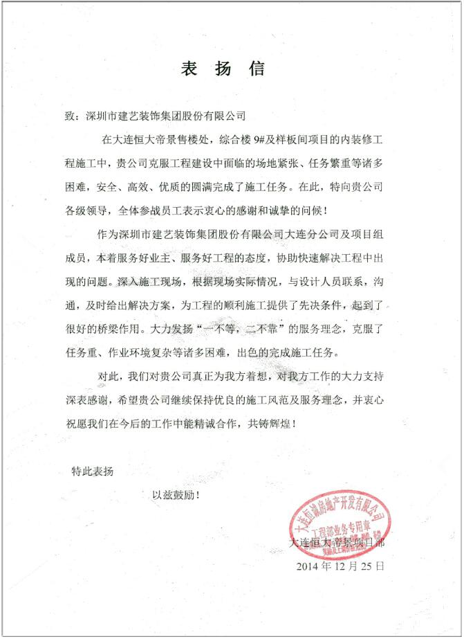 [下一篇]關(guān)于建藝集團(tuán)烏蘭浩特恒大綠洲項目部的表揚信