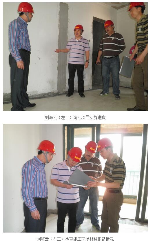 公司董事長劉海云于2013年5月12日親臨太原恒大山水城項(xiàng)目現(xiàn)場檢查、指導(dǎo)工作,由集團(tuán)工程總監(jiān)楊廣生(主管恒大項(xiàng)目)以及本項(xiàng)目部全體管理人員陪同,檢查了現(xiàn)場內(nèi)外施工作業(yè)區(qū),認(rèn)真聽取了楊廣生總監(jiān)對于本項(xiàng)目的工作匯報(bào),仔細(xì)向項(xiàng)目部負(fù)責(zé)人及各崗位負(fù)責(zé)或技術(shù)人員詢問了施工的進(jìn)度計(jì)劃及實(shí)施情況、施工質(zhì)量的措施及實(shí)施情況、人員的組織及安排情況、材料的計(jì)劃及供應(yīng)情況、甲方進(jìn)度目標(biāo)及質(zhì)量目標(biāo)要求、項(xiàng)目部為實(shí)現(xiàn)甲方的目標(biāo)所采取的各項(xiàng)措施等等。劉海云董事長指出了項(xiàng)目施工管理上的各項(xiàng)不足,提出了各項(xiàng)寶貴的有針對性的措施和辦法,并且要求項(xiàng)目部基于現(xiàn)有的管理水平要有一個(gè)較大的提升和飛躍,切實(shí)落實(shí)各項(xiàng)管理措施,必須采取一切可能的、合理的、可實(shí)施的措施確保甲方進(jìn)度及質(zhì)量目標(biāo),希望項(xiàng)目部著眼大局,攻堅(jiān)克難,科學(xué)管理,順利完成各項(xiàng)既定的任務(wù)目標(biāo),贏得甲方的贊譽(yù)和良好評價(jià)。