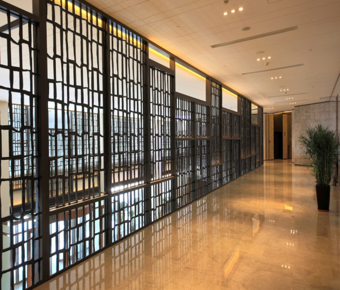 建藝集團承建了酒店大堂及公共部分的精裝修,施工范圍為1-2層公共區(qū)域、包括餐廳,酒吧,宴會廳,會議室,大廳,走廊,電梯廳。