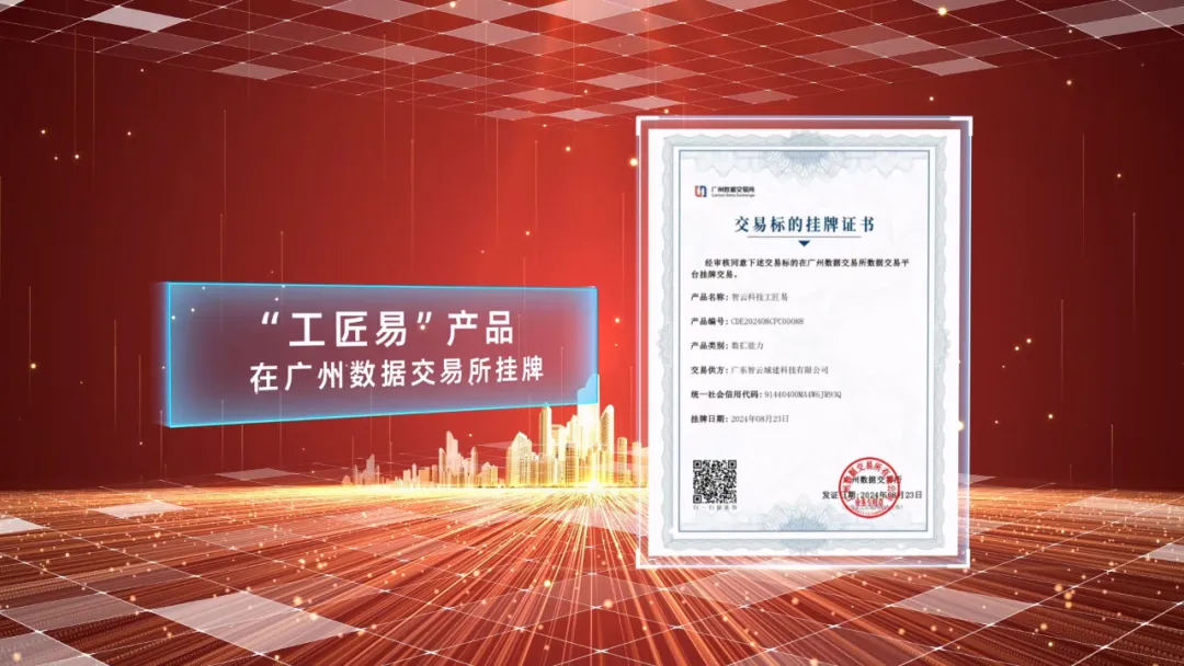 近日,建藝集團旗下孫公司——廣東智云城建科技有限公司(原名廣東建采網(wǎng)科技有限公司,下稱智云城建科技)其自主研發(fā)的產(chǎn)品“工匠易”,在廣州數(shù)據(jù)交易所成功掛牌,標志著該產(chǎn)品正式進入數(shù)據(jù)交易市場,獲得交易標的掛牌證書,成為推動建筑行業(yè)數(shù)字化轉型的重要力量。