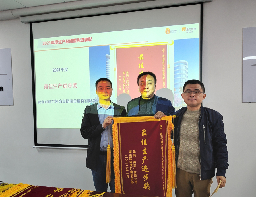 日前,南山醫(yī)院改擴(kuò)建項目部召開“2021年度生產(chǎn)總結(jié)暨先進(jìn)表彰會”,重點表揚了一批在項目建設(shè)過程中表現(xiàn)突出、成績優(yōu)異、作風(fēng)一流的參建單位。建藝團(tuán)隊?wèi){借一流的精細(xì)化管理與高品質(zhì)施工把控,得到了華潤(深圳)有限公司南山醫(yī)院改擴(kuò)建項目部等相關(guān)各方的一致認(rèn)可,獲評為“2021年度最佳生產(chǎn)進(jìn)步獎”。