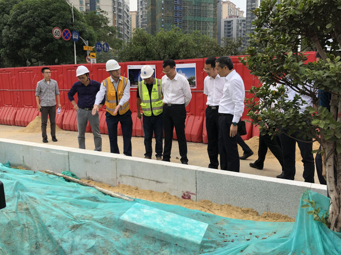 11月13日,寶安區(qū)委書記姚任、副區(qū)長朱恩平帶隊到四方公園項目現(xiàn)場,就景觀設(shè)計方案等進行考察。華潤、建藝集團等單位的相關(guān)負(fù)責(zé)人在現(xiàn)場陪同參觀,并就項目整體設(shè)計、施工要點等進行了介紹及匯報。